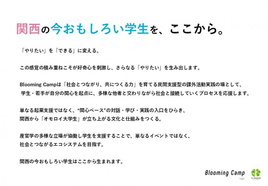 本取り組みはBlooming CampとY-PU大学が「関西の今面白い学生を、ここから」をコンセプトに展開する学生共創企画です。